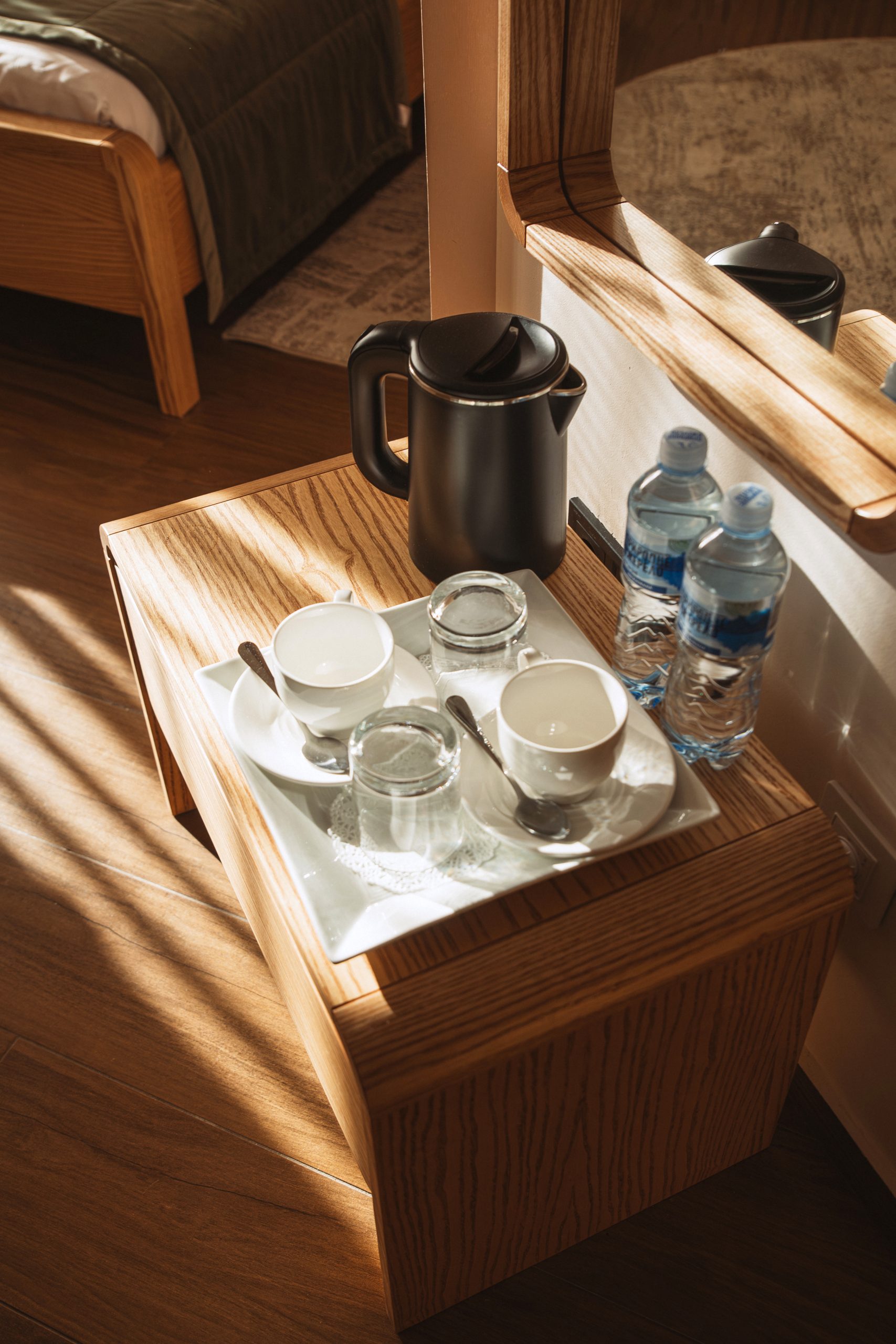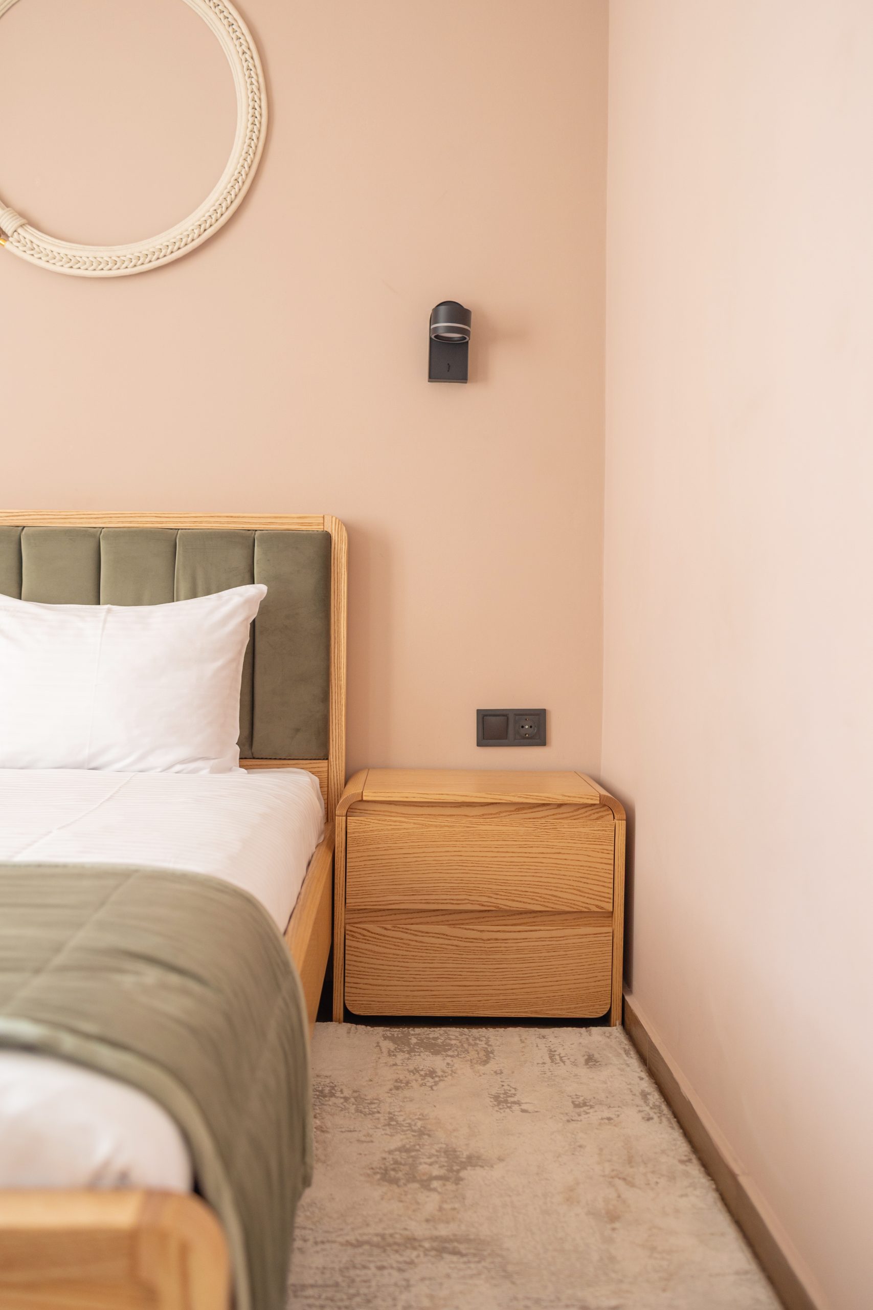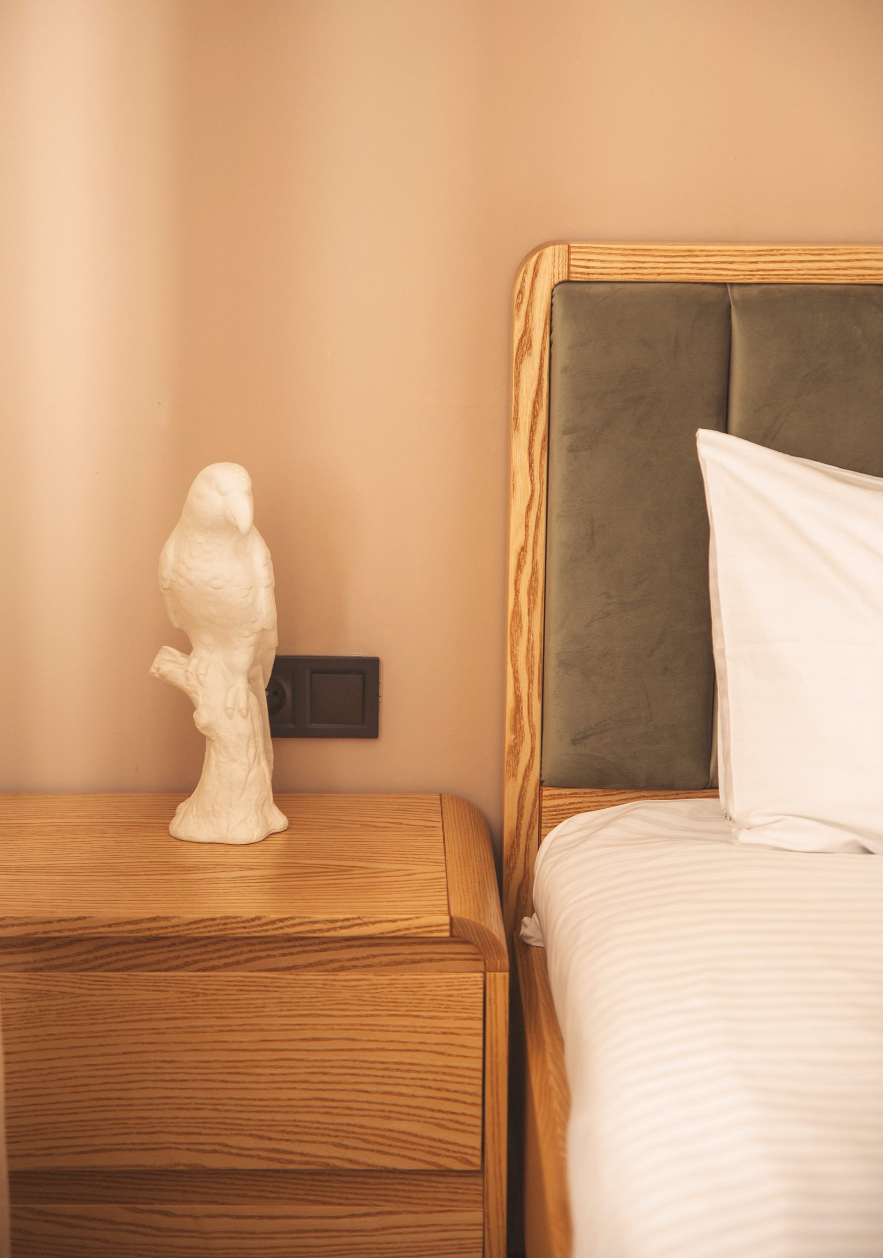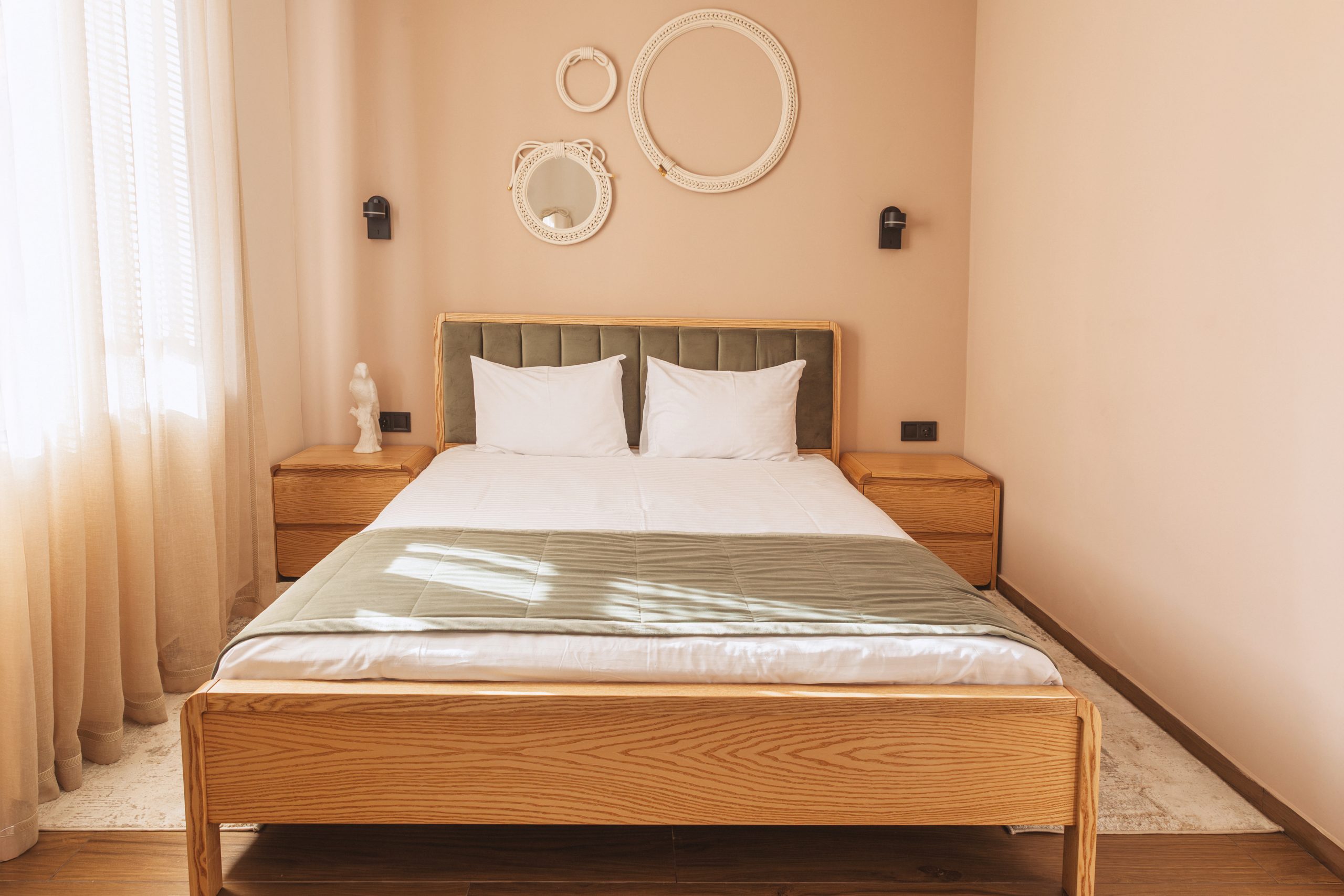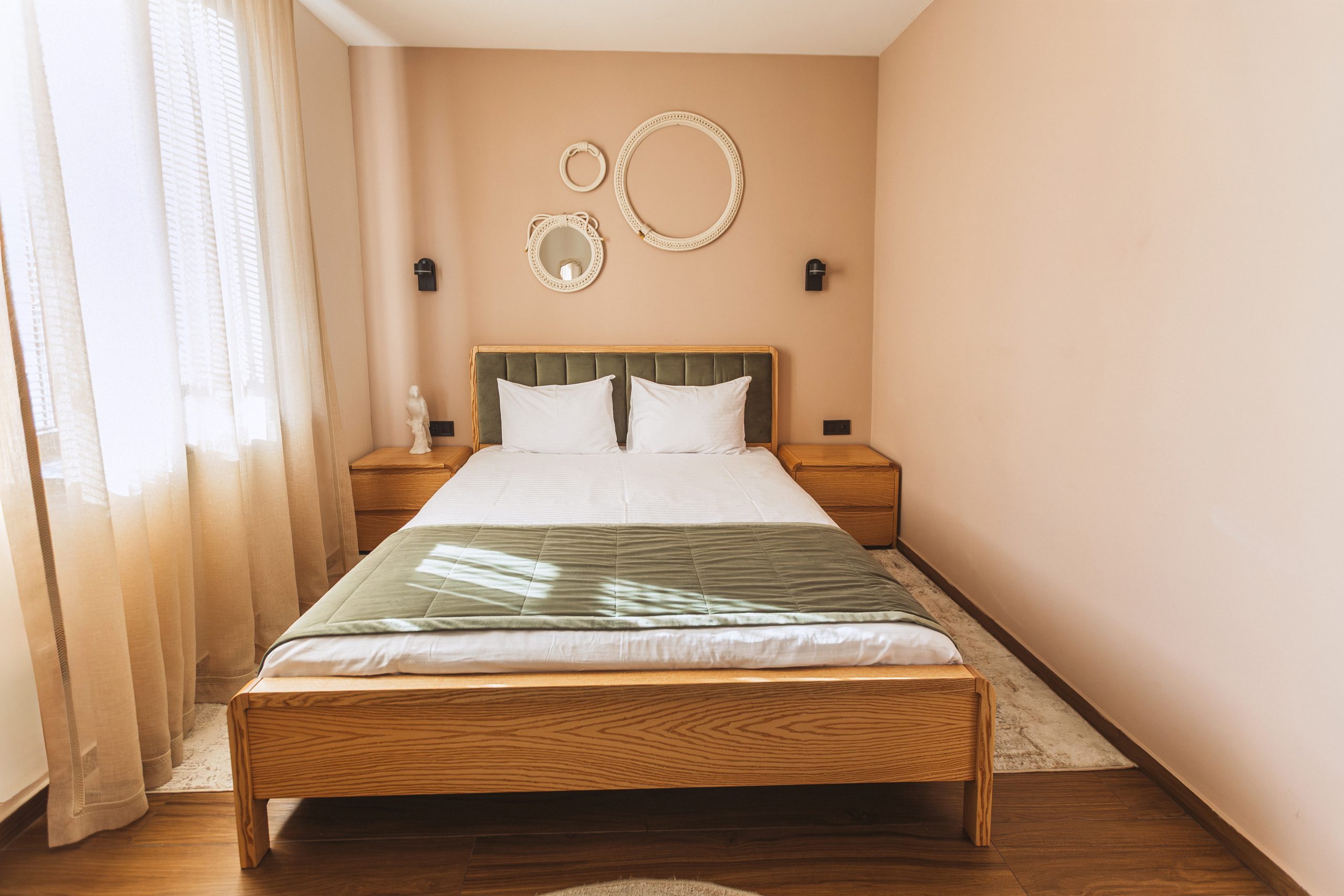 • Комфортне двоспальне ліжко — м’який матрац та бездоганна білизна для глибокого сну.
