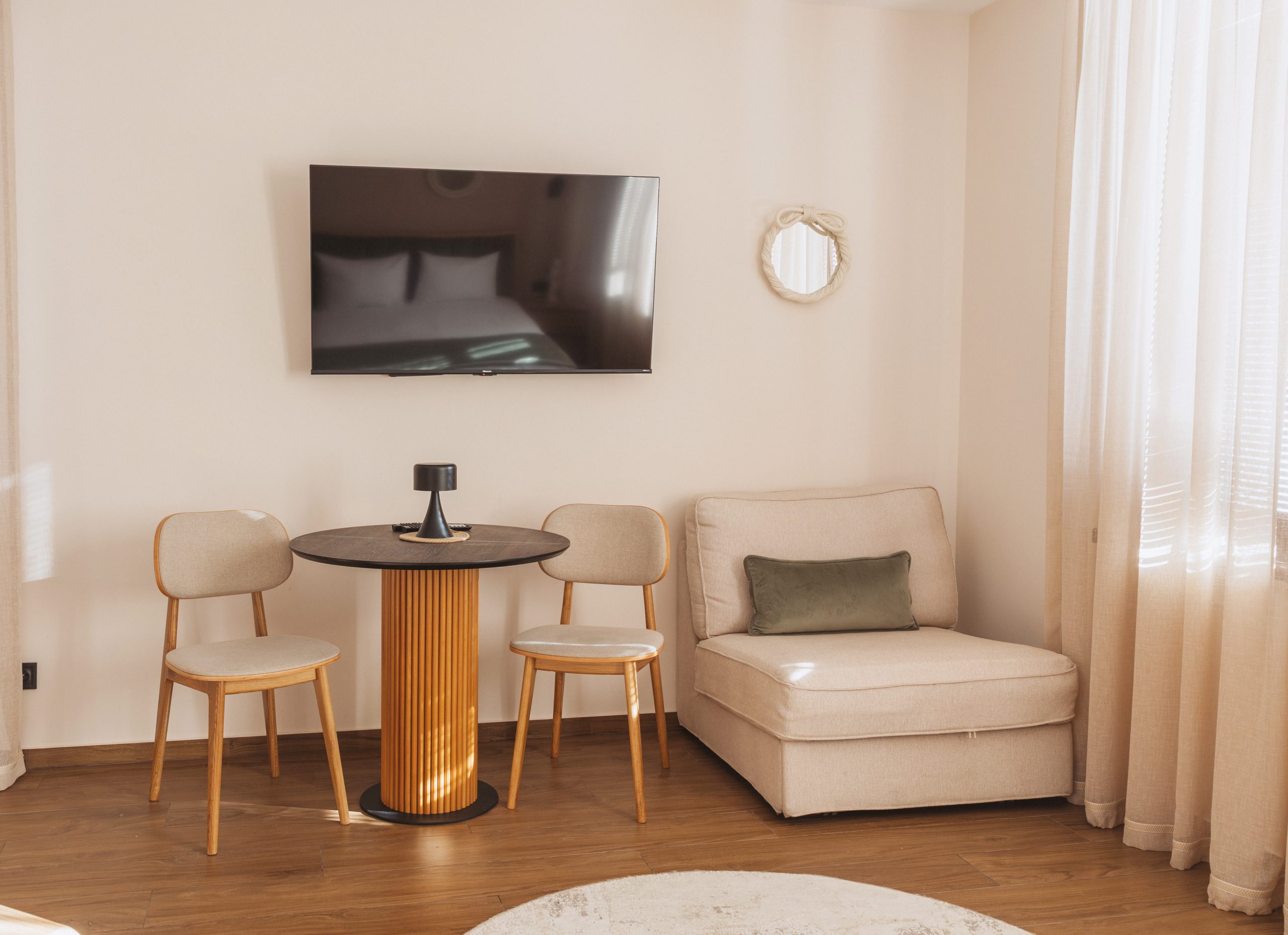 • Стильна робоча зона — зручний стіл і крісло для роботи чи ранкової кави.