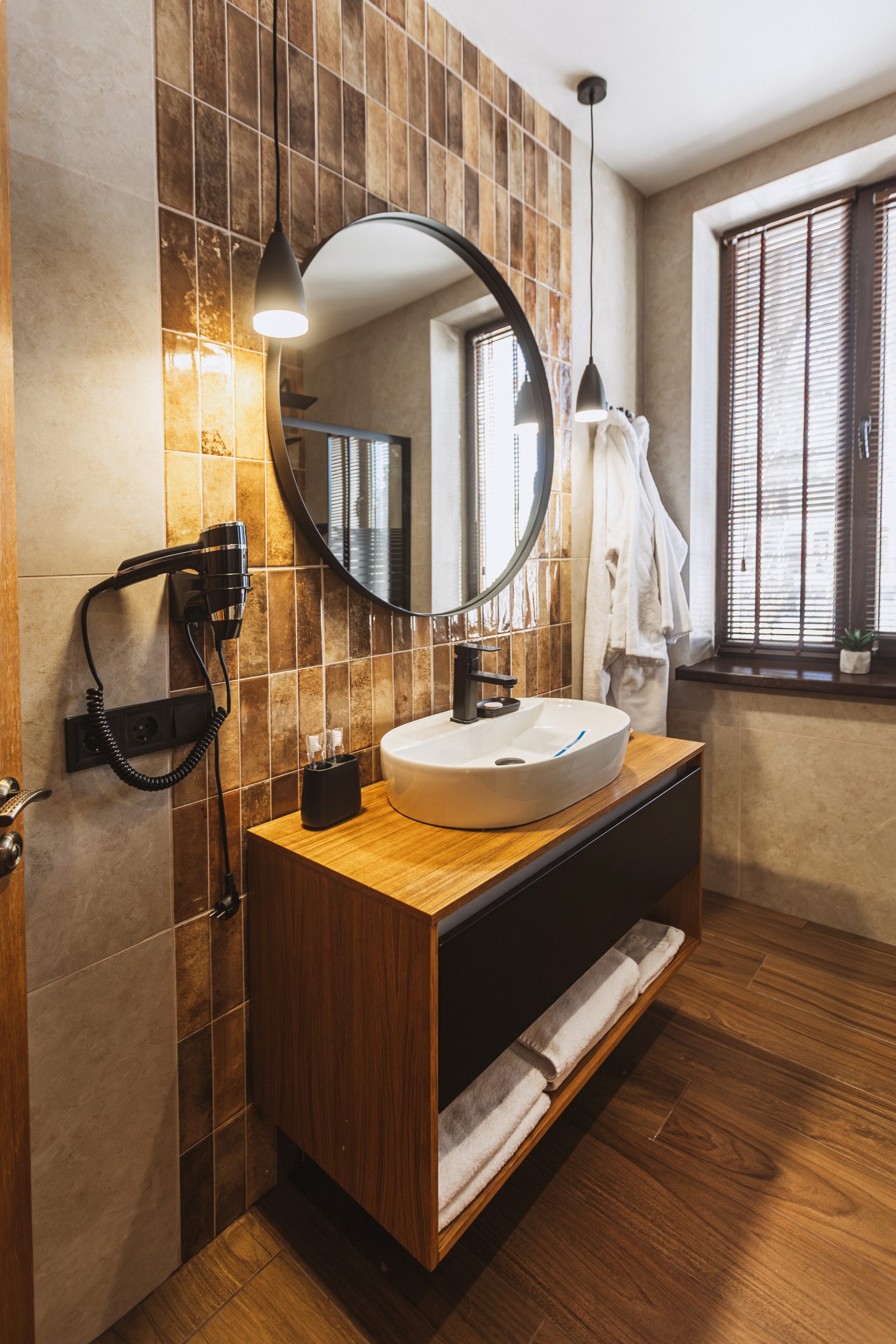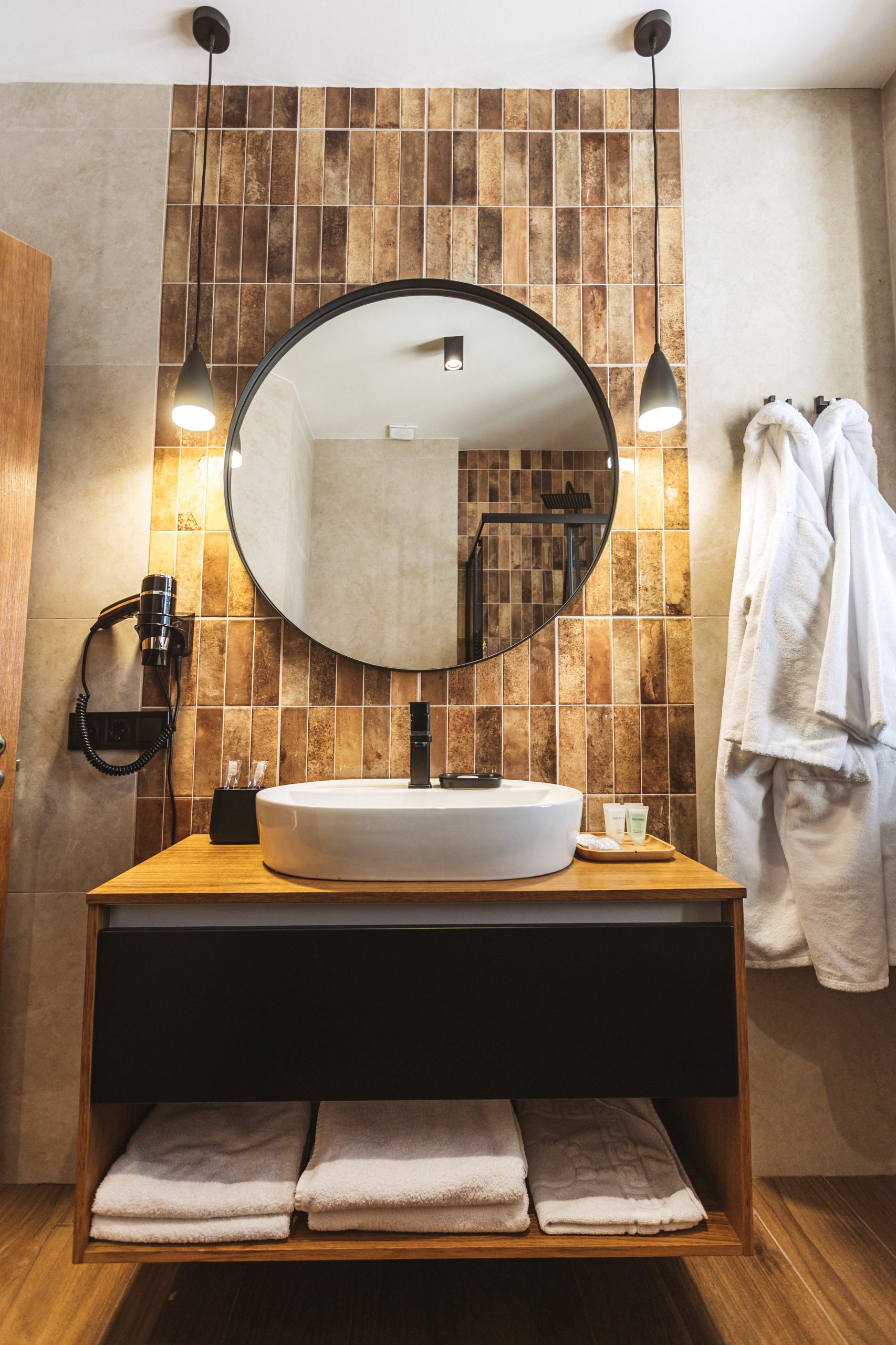 • Фен і рушники — усе для щоденного догляду та зручності.