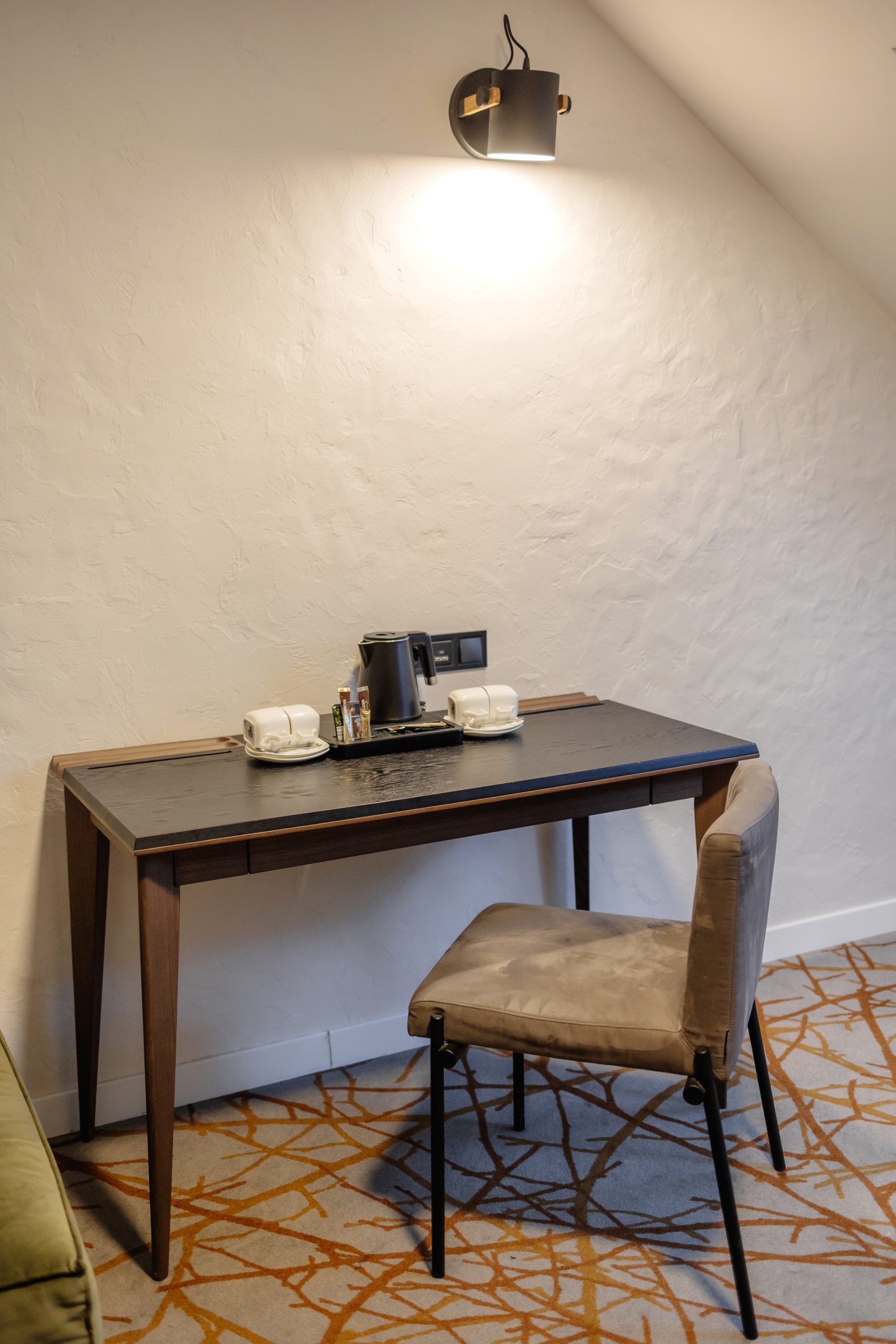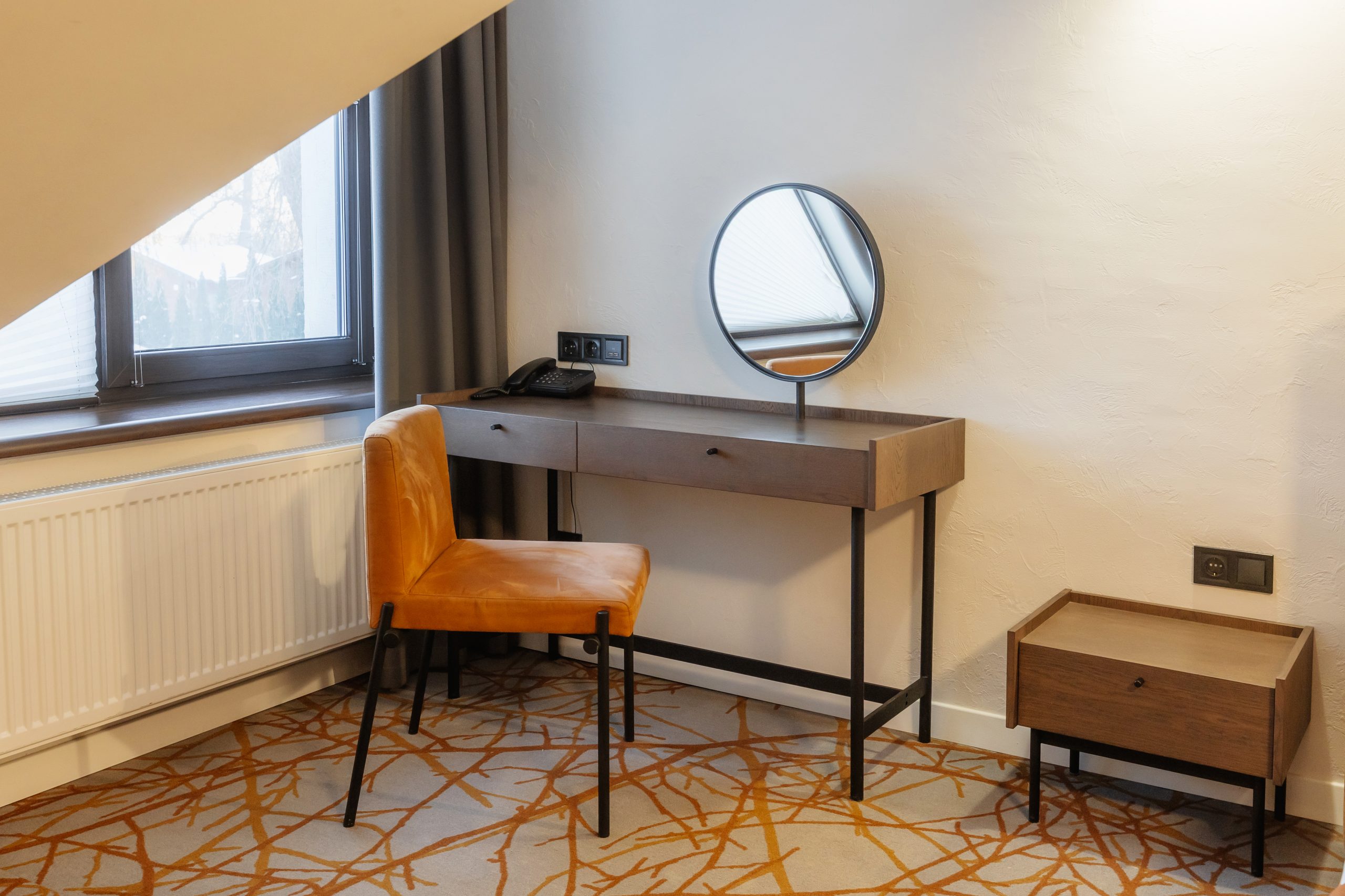 - Стильна робоча зона — зручний стіл і крісло для роботи чи неспішної ранкової кави.